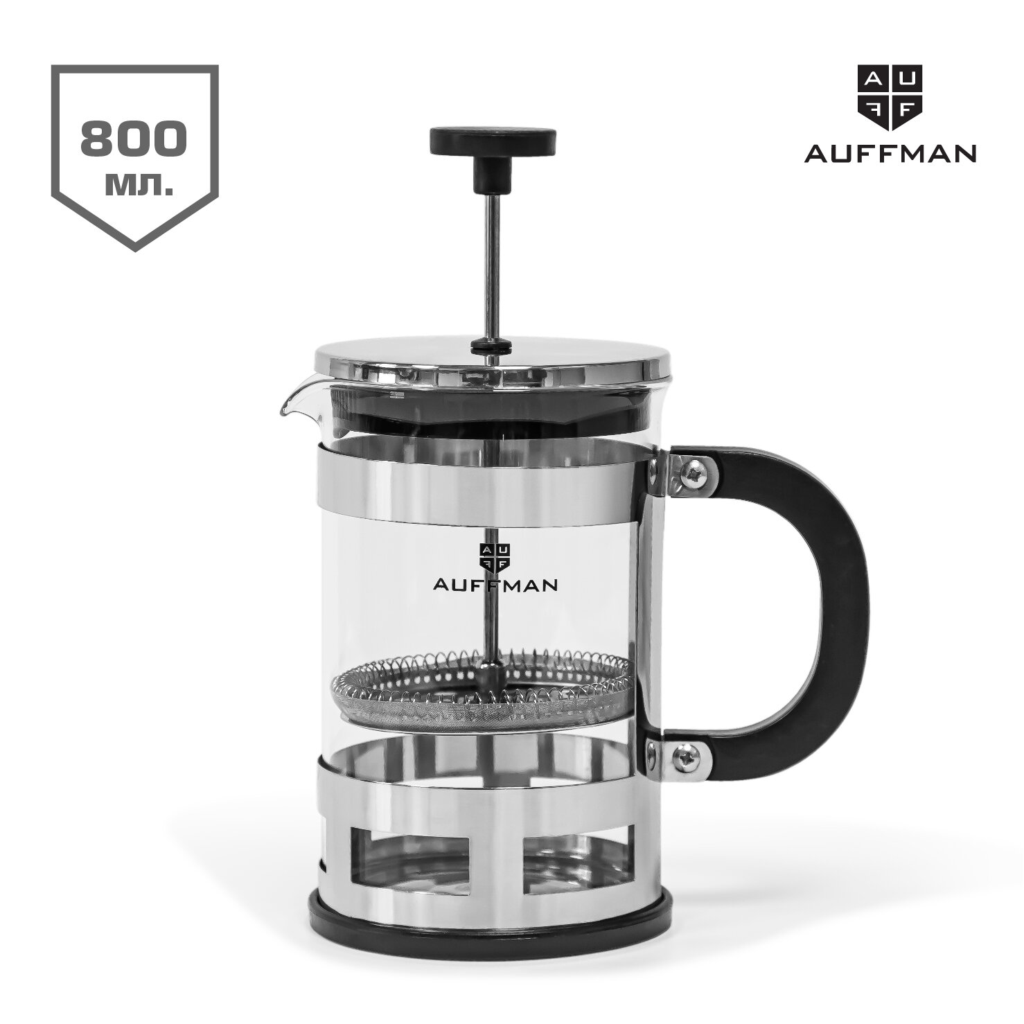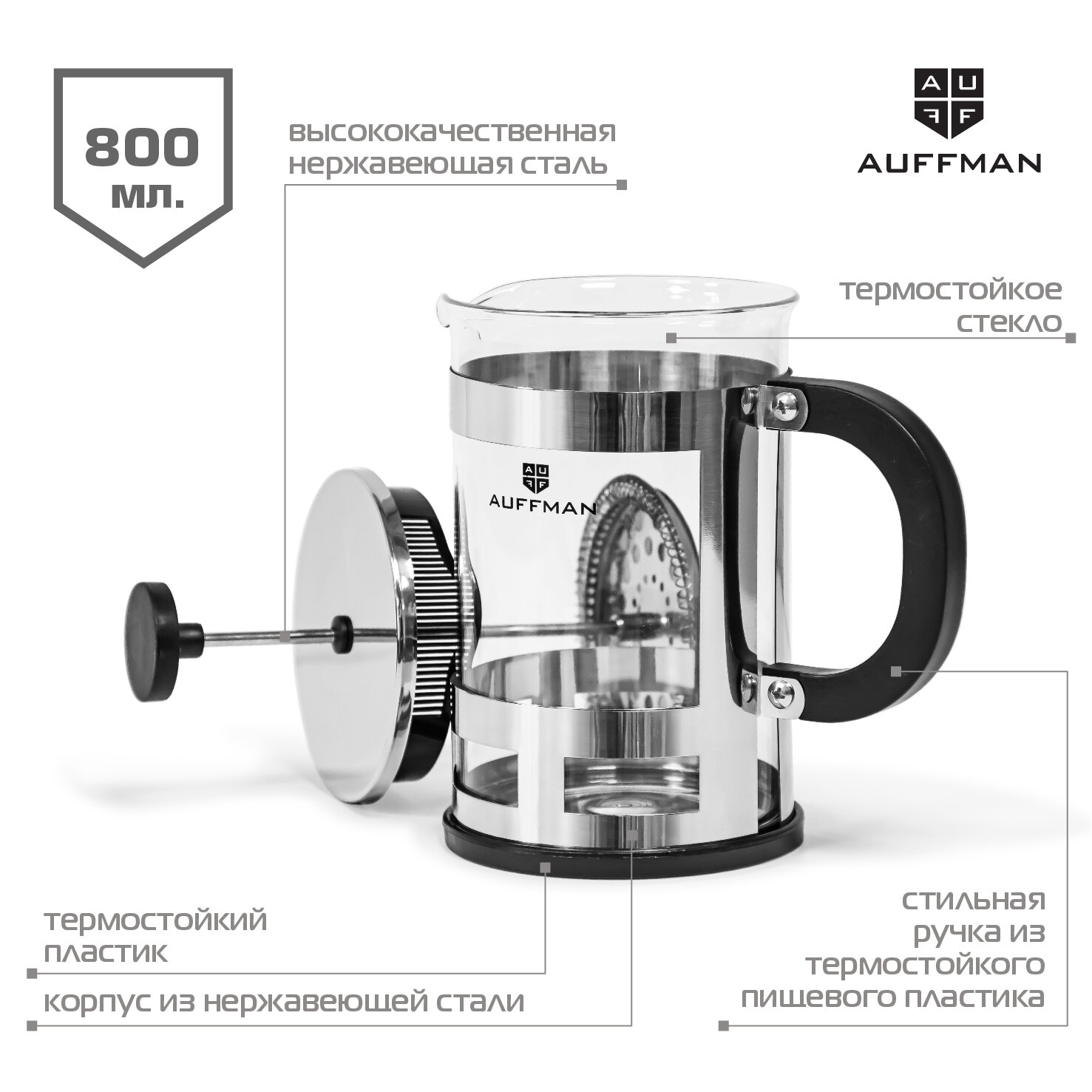 Купить Френч-пресс Auffman для чая, кофе 800мл, стеклянный чайник кофейник с прессом фильтром из нержавеющей стали с доставкой по всей России.