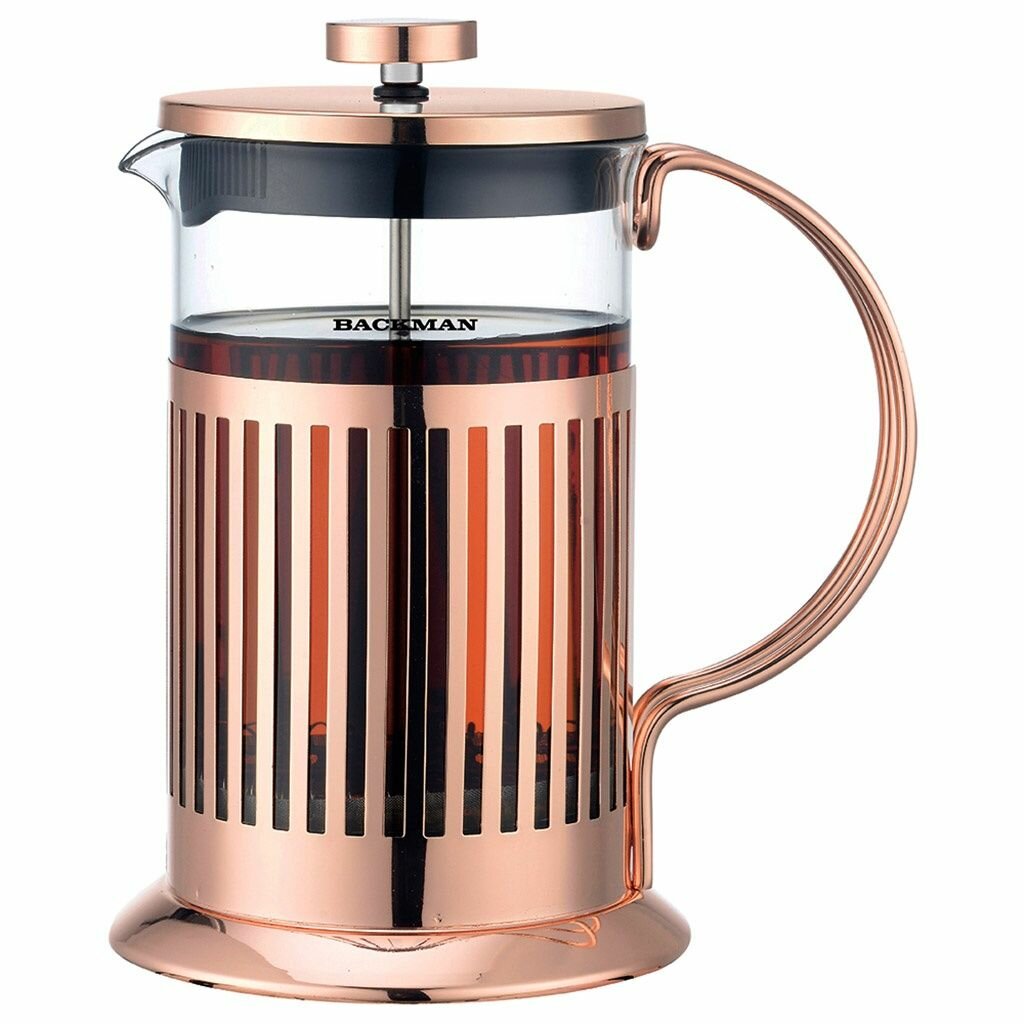 Выбирая заварочник для чая или кофе, важно обратить внимание на его достоинства и внешний вид. Наш френч пресс является идеальным выбором для тех, кто ценит настоящий вкус напитков. Френч-пресс стеклянный 800 мл для чая и кофе. Френч-пресс 800 мл заварочный BACKMAN предназначен для заваривания чая, приготовления кофе и других напитков. Съемная колба изготовлена из жаропрочного стекла и имеет практичный носик, что препятствует образованию подтеков и делает френч-пресс еще более удобным в обращении. Благодаря специальному поршню с встроенным фильтром, изготовленным из нержавеющей стали, напиток получается чистым и прозрачным. Эргономичная ручка заварника из бакелита делает использование френч-пресса удобным и безопасным. Стильный и удобный стеклянный френч-пресс кофейник выполнен в классическом стиле и легко впишется в интерьер любой кухни. Прозрачная колба из жаропрочного стекла эффектно смотрится на столе, позволяет видеть содержимое и контролировать степень крепости заварки. Френч прессы BACKMAN идеальны для заваривания кофейных и чайных напитков, отлично держат тепло, позволяя чайным листьям полностью раскрыться, а молотому кофе настояться. В результате напитки получаются концентрированными, насыщенными и ароматными. Поршень из нержавеющей стали не окисляется и не изменяет вкус готовой заварки. Заварник с прессом имеет дополнительный фильтр на крышке для лучшей фильтрации. Стеклянный чайник для заварки изготовлен из экологичных и прочных материалов, не выделяет вредных веществ под воздействием кипятка, а заварной кофе или чай будут каждый раз радовать своими неповторимыми вкусами вас, вашу семью и гостей. Заварочный френч-пресс обязательно пригодится на кухне, а также френч-пресс 800 мл станет замечательным подарком для родственников, друзей, родителей и коллег на День Рождения, 8 Марта, 14 февраля, просто так. Декоративная посуда поставляется в красивой подарочной коробке. Порадуйте себя и своих близких самым популярным подарком-френч-пресс для чая. В нашем магазине вы найдете много посуды для кухни: тто предметы дизайна, на которые приятно смотреть и которыми приятно пользоваться. Здесь Вы найдете все необходимое, и даже больше, для Вашей кухни, дачи, офиса, дома. Центральное место ассортименте посуды принадлежит заварочным чайникам из стекла жаропрочного, а также чайникам для кипячения воды из огнеупорного стекла. Правильно подобранный заварной чайник позволит максимально раскрыться вкусовым, визуальным и ароматным качествам того или иного чайного напитка. Подписывайтесь и следите за нашими новинками и акциями!