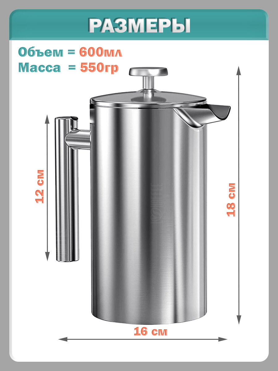 Френч-пресс для кофе и чая, кофейник, заварник, нержавеющая сталь — 600 мл: сравнение цен, характеристики, фото, актуальное наличие и цены.