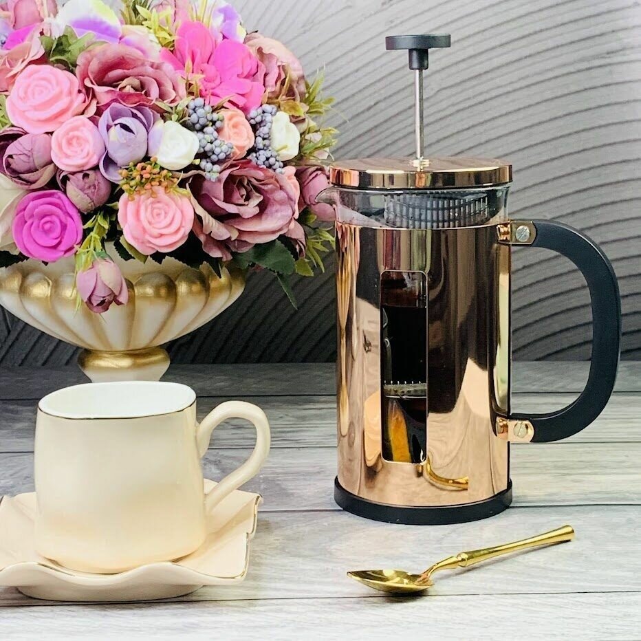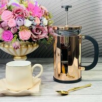 Френч-пресс бренда Lenardi используют для приготовления напитков, а так же для подачи готового чая. Изготовлен из термостойкого стекла, устойчивого к перепаду температур до 200 градусов С. Стеклянная колба, с прессом внутри, фильтрует заварку и не позволяет листьям попасть в готовый напиток. За счет эргономичной формы удобен в использовании. Френч-пресс — кухонный прибор, с которым справится практически любой член семьи.
