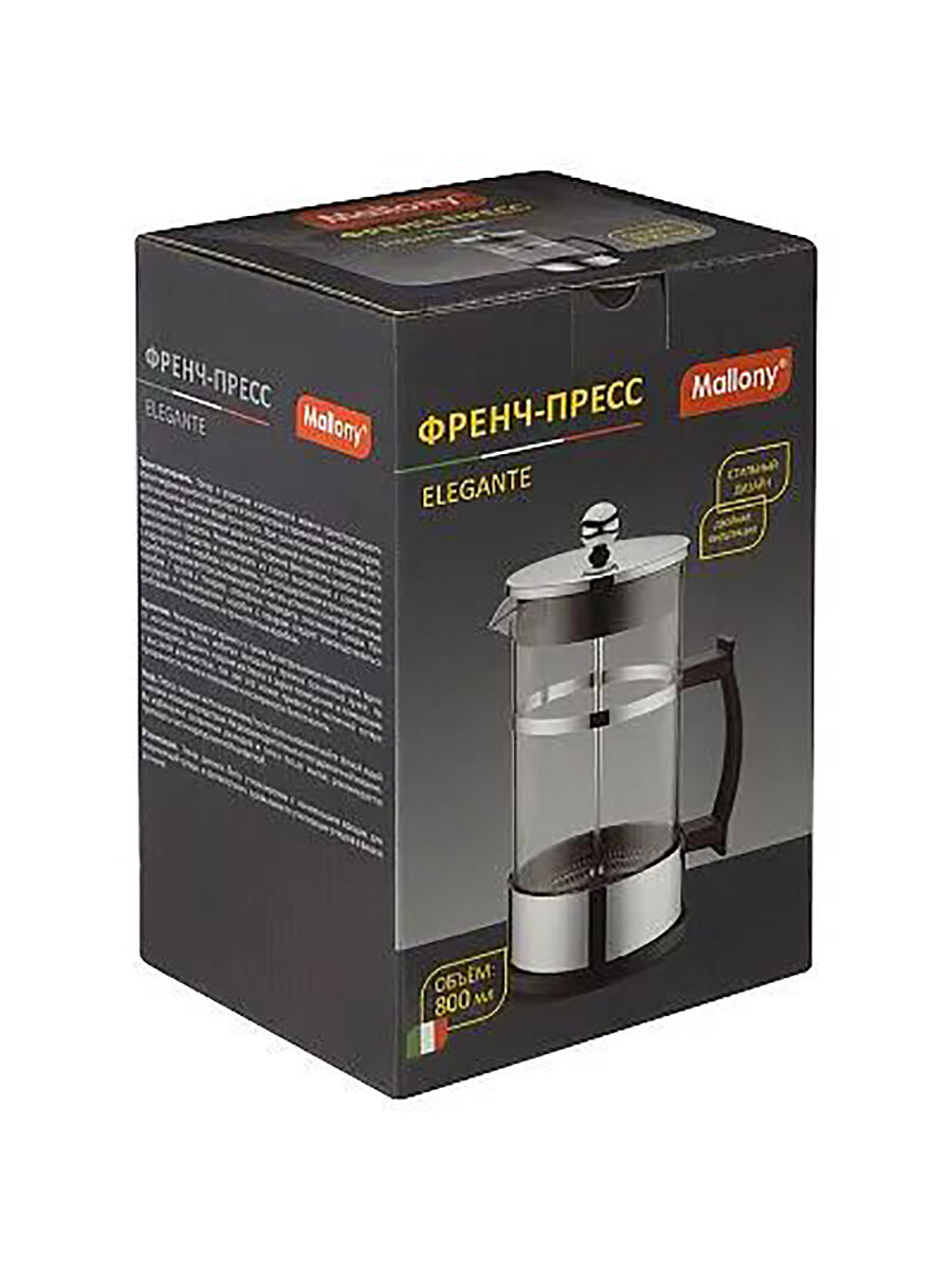 Выбирая френч-пресс Mallony Elegante, вы получаете стильный, функциональный и надежный аксессуар для приготовления ваших любимых напитков.