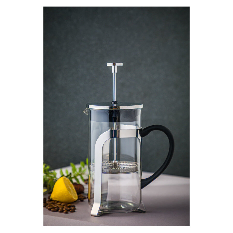 Френч-пресс из стекла и нержавеющей стали 1,0 л: - высококачественное термостойкое боросиликатное стекло; - теплоизолированная ручка с мягким покрытием для максимального комфорта; - носик без подтёков для безопасного разливания напитка в чашки; - легко моющееся съёмное стекло. Поставляется в подарочной коробке. Материал: нержавеющая сталь, боросиликатное стекло Объём: 1000 мл Размер: 18,0х11,0х22,0 см Вес: 550 г