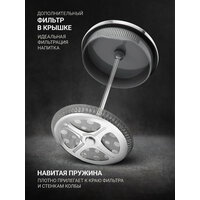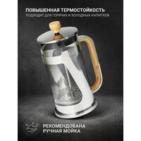 Френч-пресс TalleR TR-32347 Рейна 1000 мл. Материалы френч-пресса: жаропрочное боросиликатное стекло, высококачественная нержавеющая сталь, пластик и бамбук. Колба выполнена из боросиликатного стекла, устойчивого к перепадам температур. Корпус выполнен из нержавеющей стали. Удобная ненагревающаяся ручка выполнена из пластика. Крышка выполнена из пластика, нержавеющей стали и бамбука. Пресс выполнен из высококачественной нержавеющей стали. Разборная конструкция пресс-фильтра облегчает уход за изделием. Большой литраж и оригинальный дизайн чайника будет уместен для большой компании. Идеален для приготовления кофе, чая, тонизирующих и расслабляющих напитков. Для сохранения наилучшего внешнего вида френч-пресса рекомендуется ручная мойка. Заварочник подойдет для трав, для чая, для кофе, для сока с мякотью, для фильтрации напитков. В нашем магазине Вы сможете найти: посуда для кухни и дома, индукционная посуда, наборы из нержавеющей стали, огромный ассортимент подарков на 8 марта, Новый год, день рождения, новоселье, свадьба. Наши товары радуют как женщин, так и мужчин.