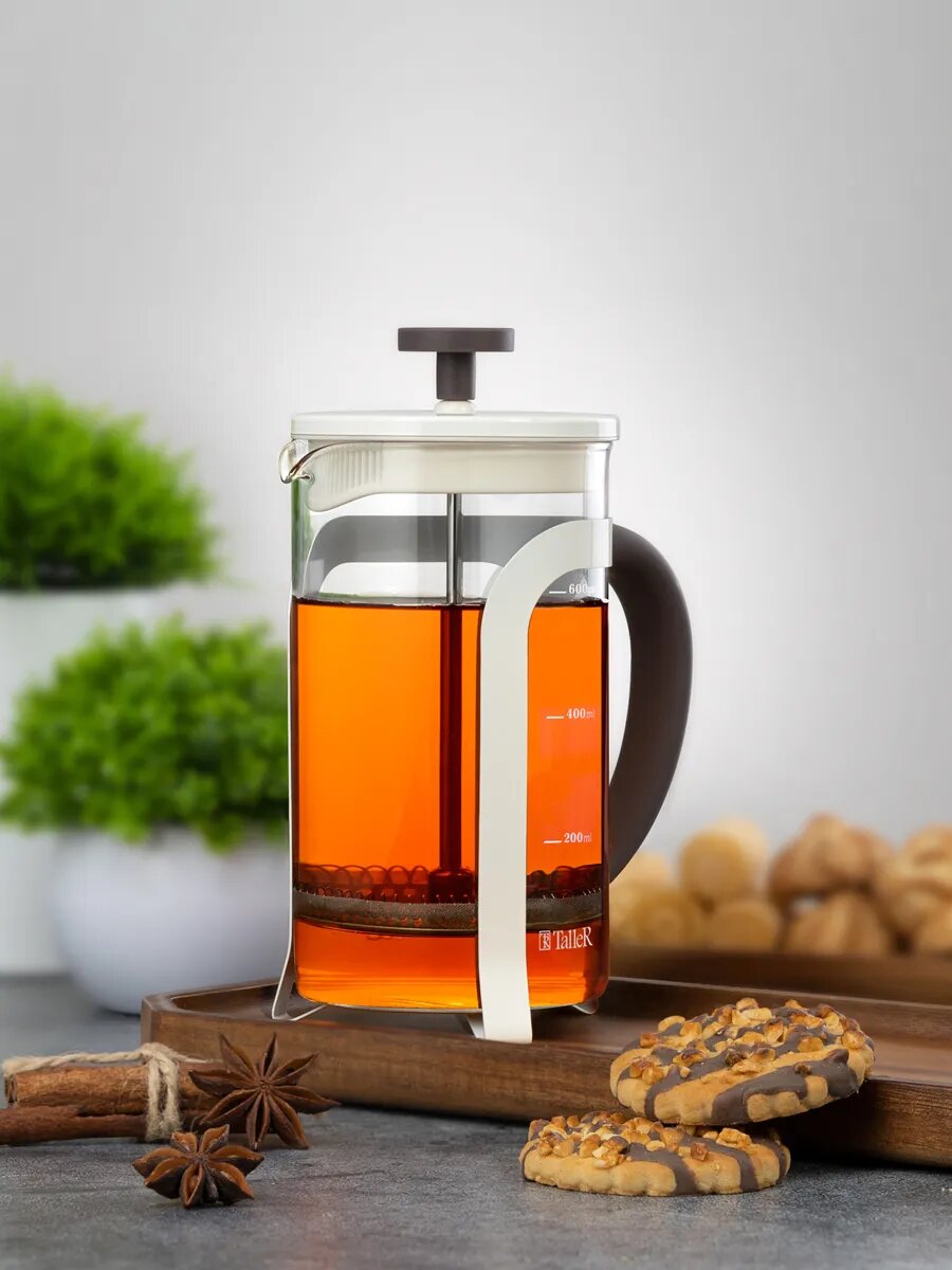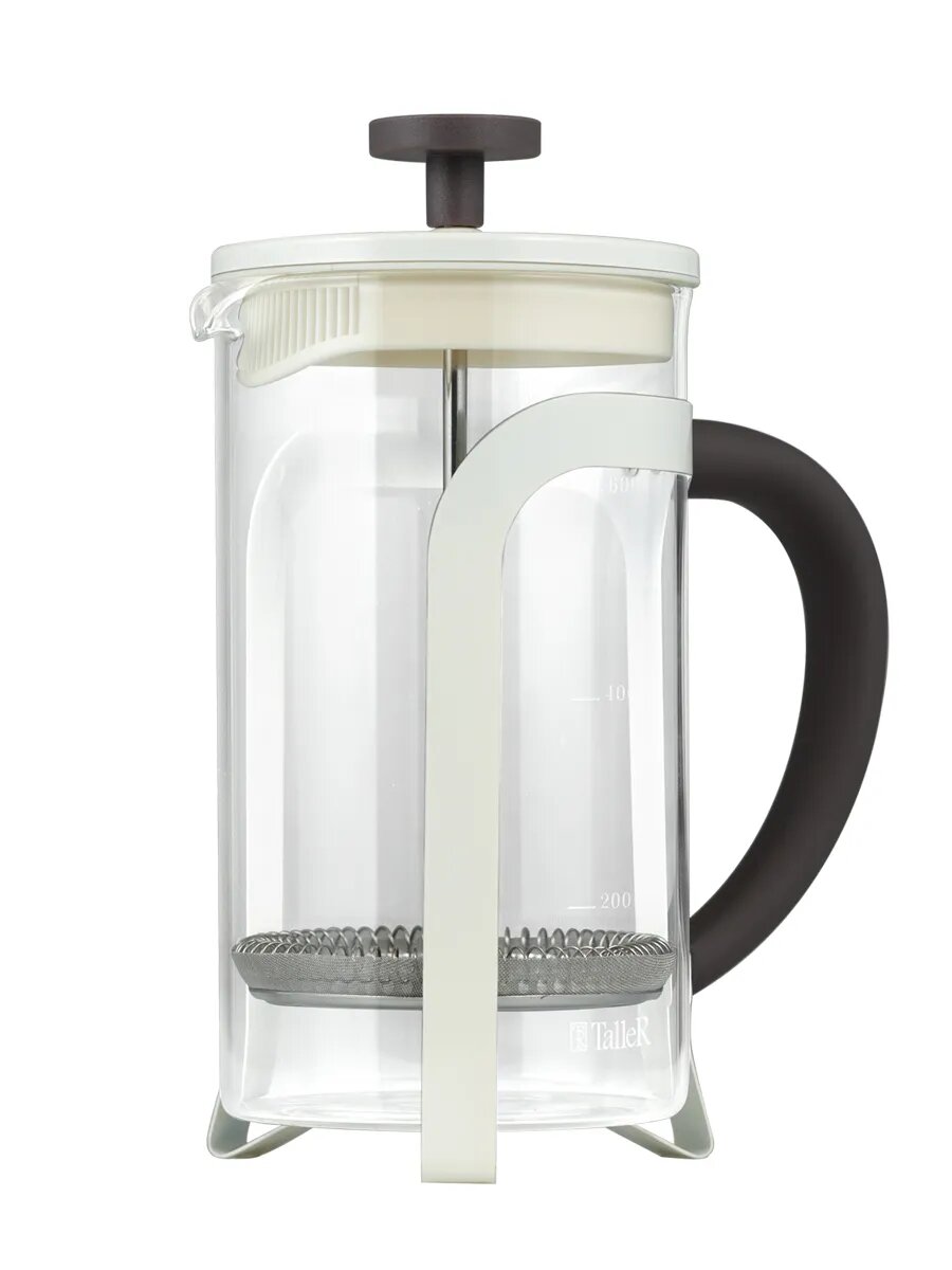 Френч-пресс TalleR TR-32348 Хюгге 800 мл. Колба выполнена из боросиликатного стекла, устойчивого к перепадам температур. Корпус выполнен из высококачественной нержавеющей стали 18/10 (AISI 304) и безопасного пищевого пластика (РР). Пресс выполнен из высококачественной нержавеющей стали 18/10. Цвет корпуса и крышки - молочный. Цвет ручек - коричневый. Удобная ненагревающаяся ручка. Отметки литража на колбе. Идеален для приготовления кофе, чая, тонизирующих и расслабляющих напитков. Для сохранения наилучшего внешнего вида френч-пресса рекомендуется ручная мойка. Заварочник подойдет для трав, для чая, для кофе, для сока с мякотью, для фильтрации напитков. В нашем магазине Вы сможете найти: посуда для кухни и дома, индукционная посуда, наборы из нержавеющей стали, огромный ассортимент подарков на 8 марта, Новый год, день рождения, новоселье, свадьба. Наши товары радуют как женщин, так и мужчин.