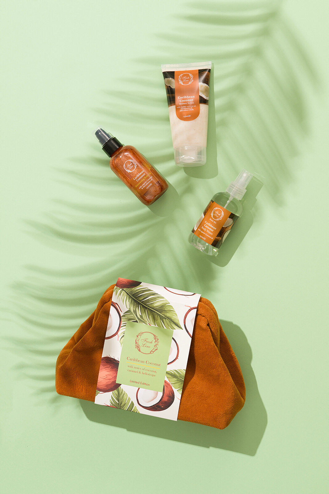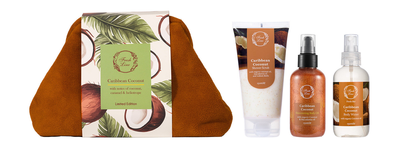 FRESH LINE Набор для тела «Карибский кокос» (Гель-скраб,150 мл+Масло для тела, 150 мл+Ароматная вода, 150 мл): сравнение цен, характеристики, фото, актуальное наличие и цены.