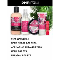 1) "Розовые джунгли" Гель для душа (Shower Gel), 300 мл. 2) "Розовые джунгли" Крем-масло для тела (Body Butter), 150 мл. 3) "Розовые джунгли" Ароматная вода для тела (Body Water), 150 мл. 4) "Розовые джунгли" Крем для рук (Hand Cream), 50 мл. 5) "Гранат" Бальзам для губ (Lip Therapy), 5,4 г.