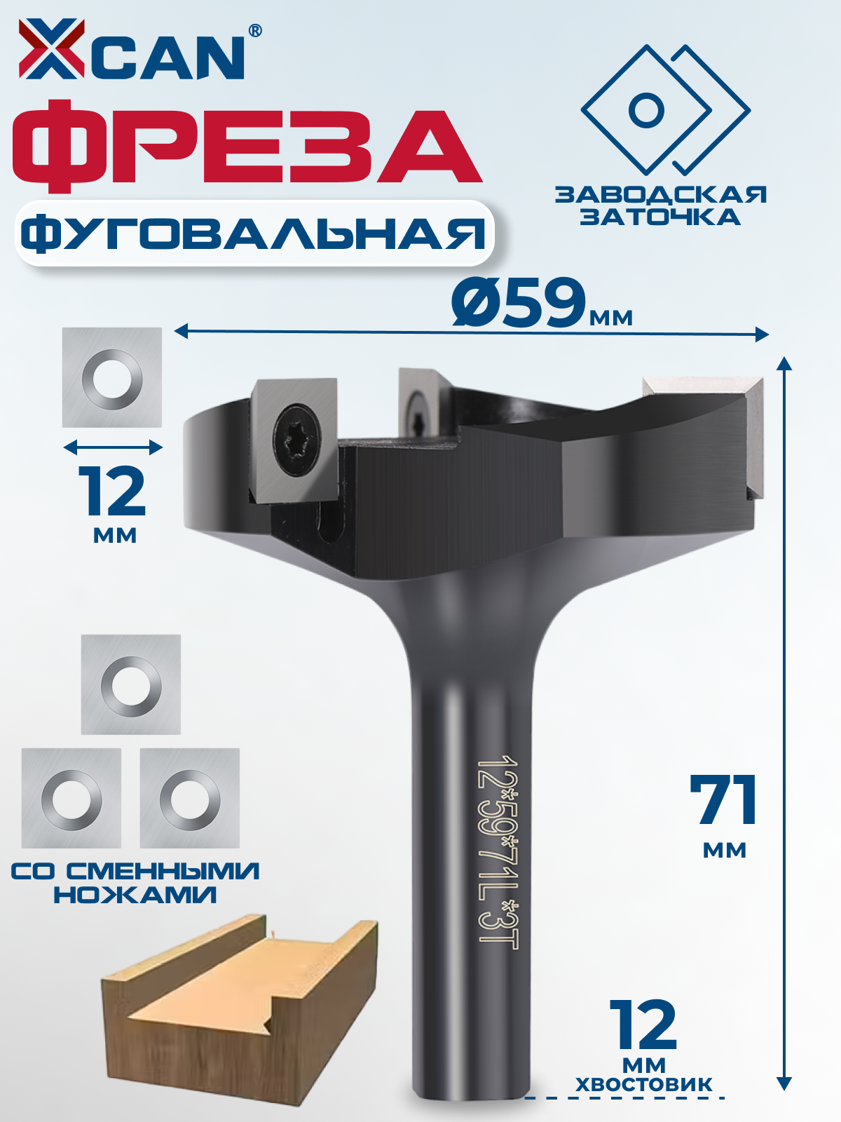 Фреза фуговальная для выравнивания поверхности XCAN со сменными ножами 12х59х71Lх3T: сравнение цен, характеристики, фото, актуальное наличие и цены.