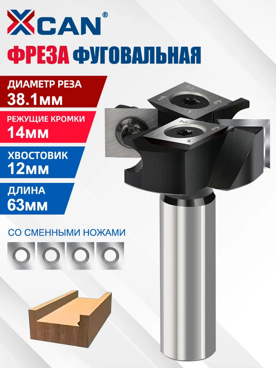 Фреза XCAN фуговальная по дереву, 12х38,1х14мм, твердосплавная, со сменными ножами, для выравнивания поверхности: сравнение цен, характеристики, фото, актуальное наличие и цены.