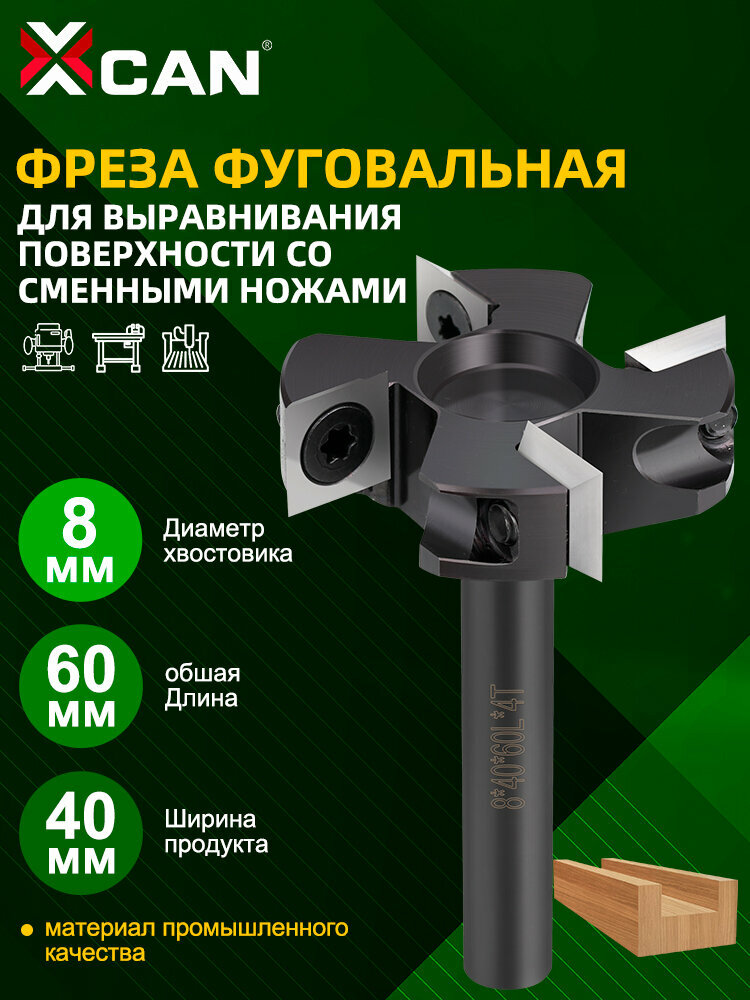 Фреза фуговальная XCAN со сменными ножами, 8х40х60Lх4T, для выравнивания поверхности: сравнение цен, характеристики, фото, актуальное наличие и цены.
