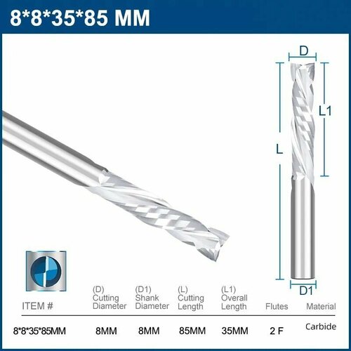 Фреза имеет стандартный диаметр хвостовика 8 мм, что делает ее совместимой с большинством фрезерных станков и станков с ЧПУ.