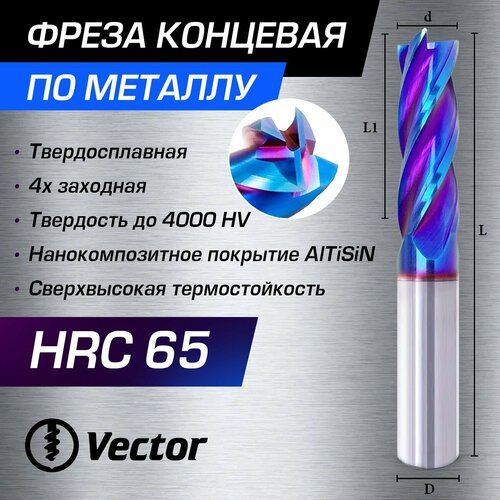 Фреза концевая по металлу твердосплавная 4-х заходная для станка с ЧПУ. Карбидо-вольфрамовый сплав с покрытием нанокомпозитным материалом AlTiSiN (Нитрид Титан-Алюминий-Кремний), что обеспечивает высокую производительность, термостойкость и анти-горение. Применимые материалы обработки: углеродистая сталь, чугун, литая сталь, легированная сталь, инструментальная сталь, нержавеющая сталь и т. д. НЕ рекомендуется применять для материалов: дерево / пластик / цветные металлы, для этого у нас есть другие фрезы. Во время работы рекомендуется использовать СОЖ.