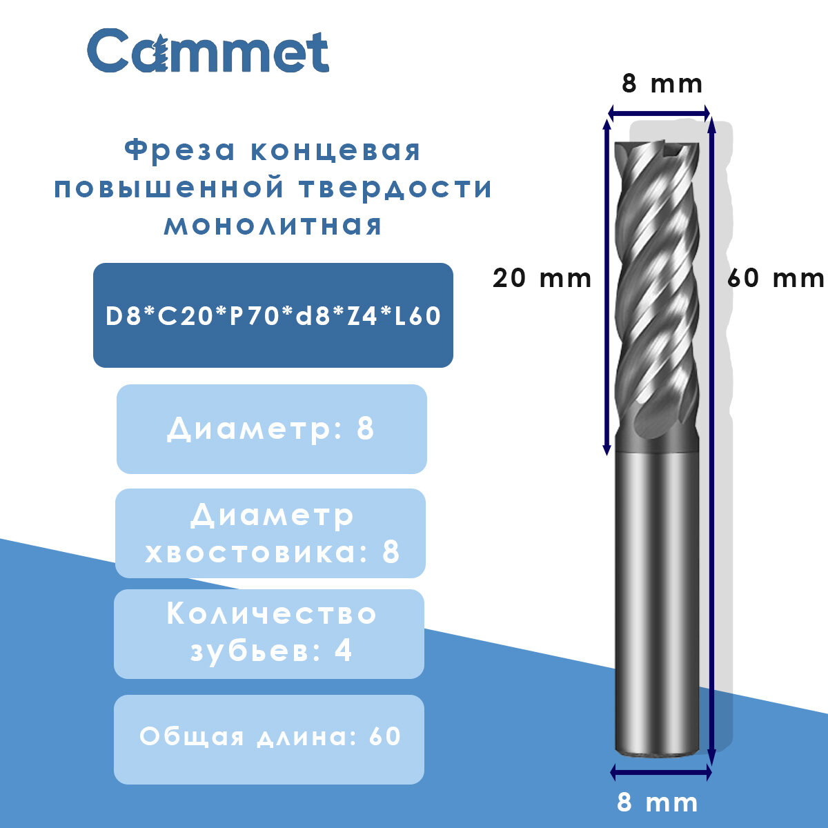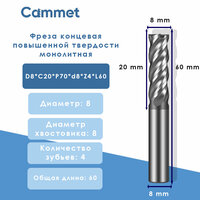 Твердосплавная фреза концевая D8*C20*P70*d8*Z4*L60 по стали монолитная повышенной твердости 70HRC: сравнение цен, характеристики, фото, актуальное наличие и цены.