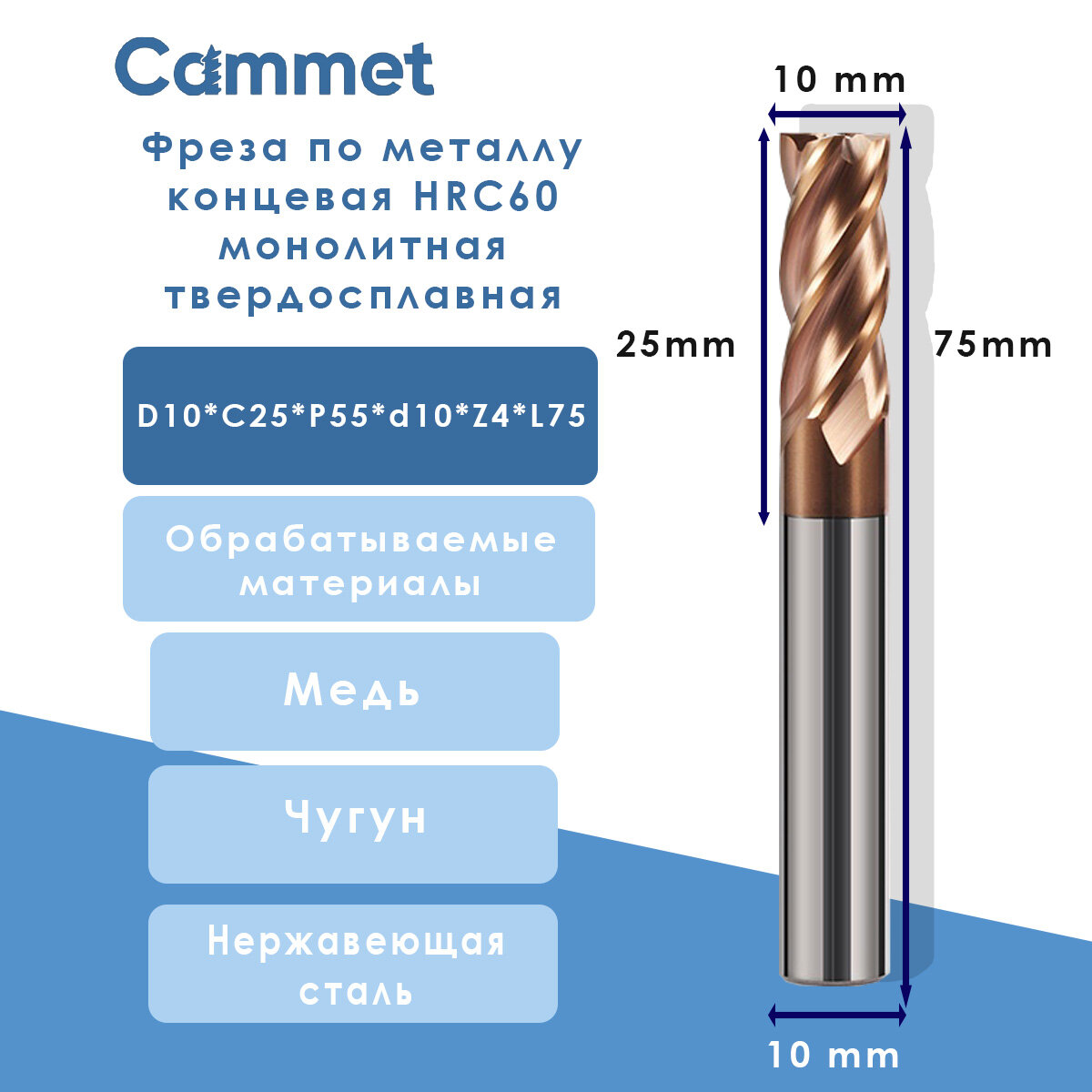 Твердосплавная фреза концевая D10*C25*P55*d10*Z4*L75 по стали HRC55 монолитная: сравнение цен, характеристики, фото, актуальное наличие и цены.