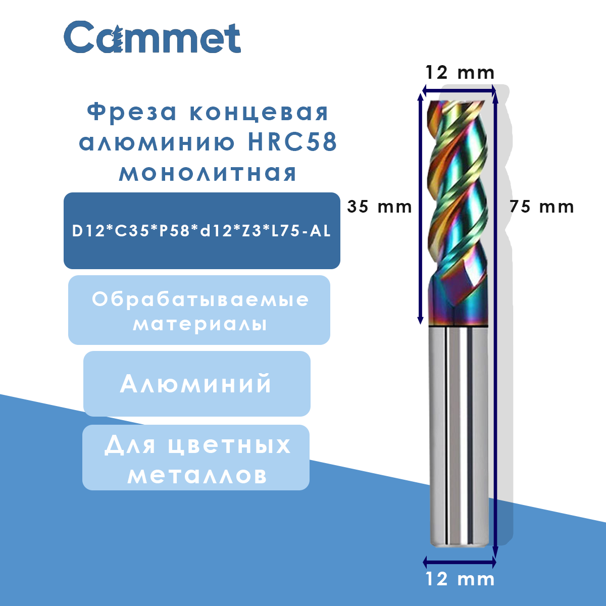 Купить Твердосплавная фреза концевая D12*C35*P58*d12*Z3*L75-AL по алюминию HRC58 монолитная с покрытием DLC с доставкой по всей России. Твердосплавная фреза концевая D12*C35*P58*d12*Z3*L75-AL по алюминию HRC58 монолитная с покрытием DLC: сравнение цен, характеристики, фото, актуальное наличие и цены.