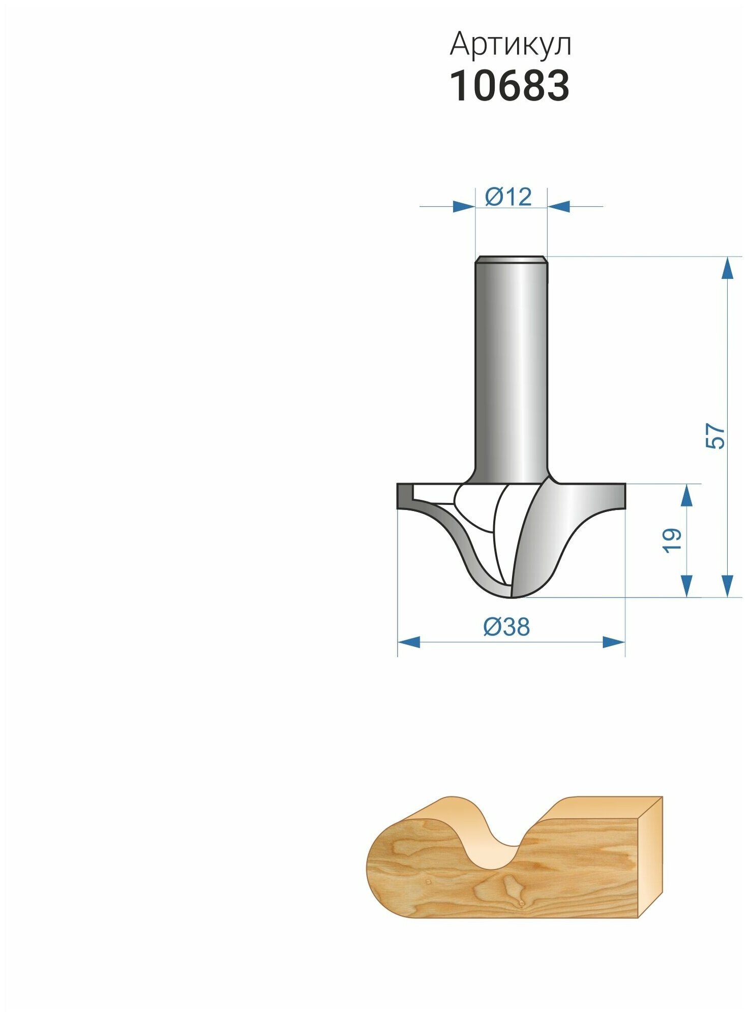 Фреза имеет внешний диаметр 38 мм и рабочую высоту 13 мм, что позволяет обрабатывать различные виды древесины.