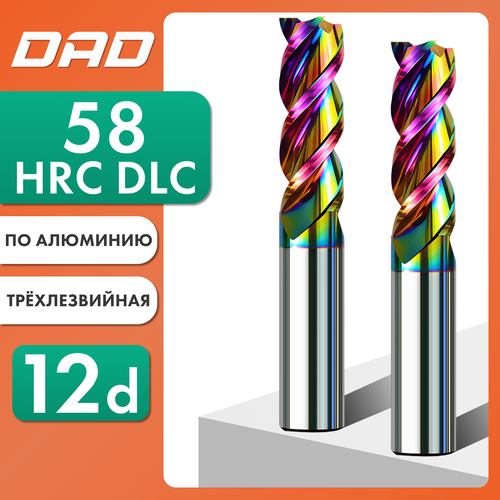 Фреза по алюминию концевая 12d*32C*12D*75L*3F HRC58 монолитная сверхтвёрдая с нанокомпозитным напылением nACo