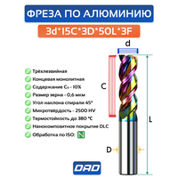 Фреза по алюминию концевая 3d*9C*3D*50L*3F HRC58 монолитная сверхтвёрдая с нанокомпозитным напылением nACo