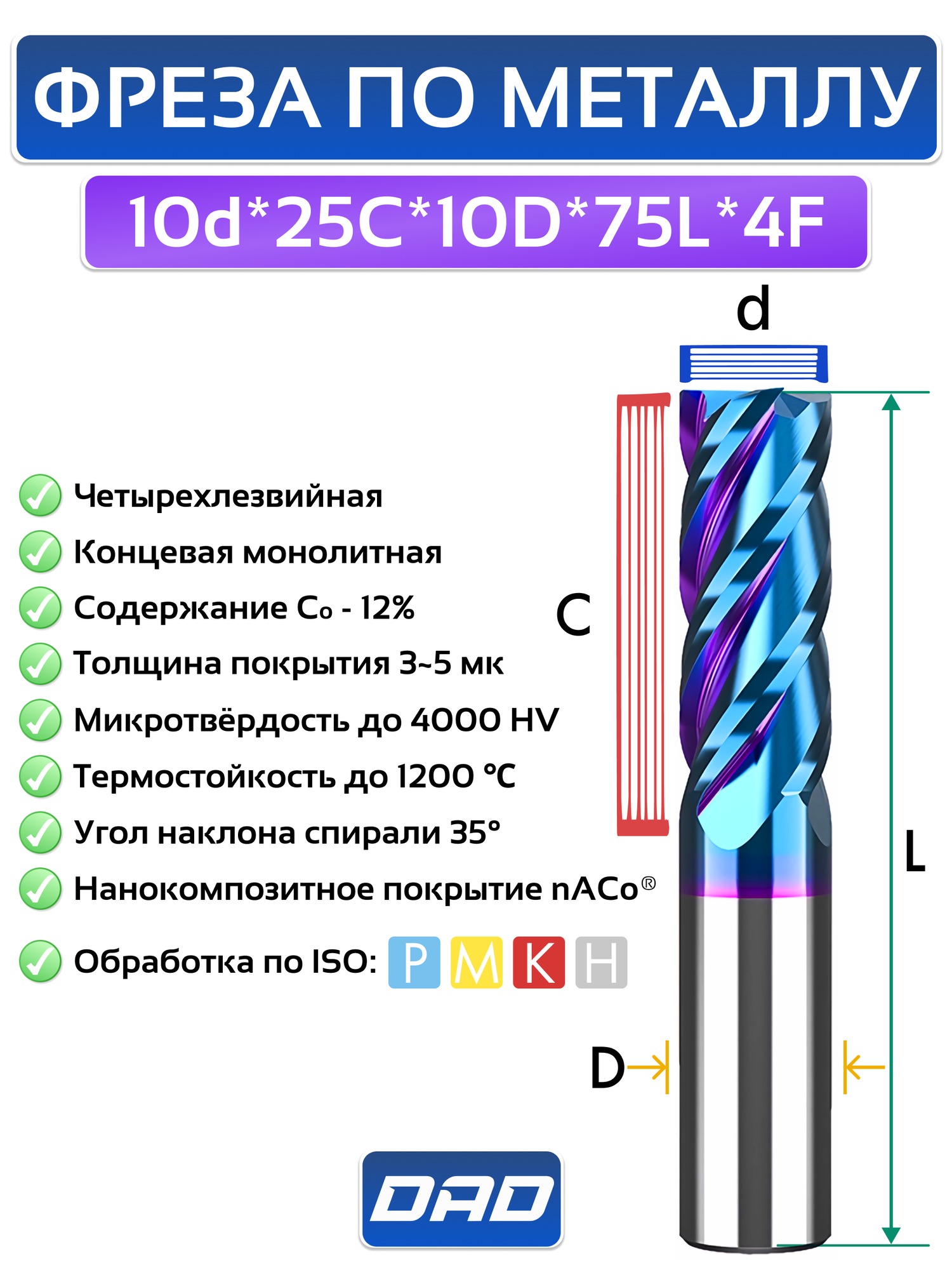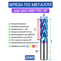 Фреза по металлу концевая 10d*25C*10D*75L*4F HRC65 монолитная сверхтвёрдая с нанокомпозитным напылением nACo: сравнение цен, характеристики, фото, актуальное наличие и цены.