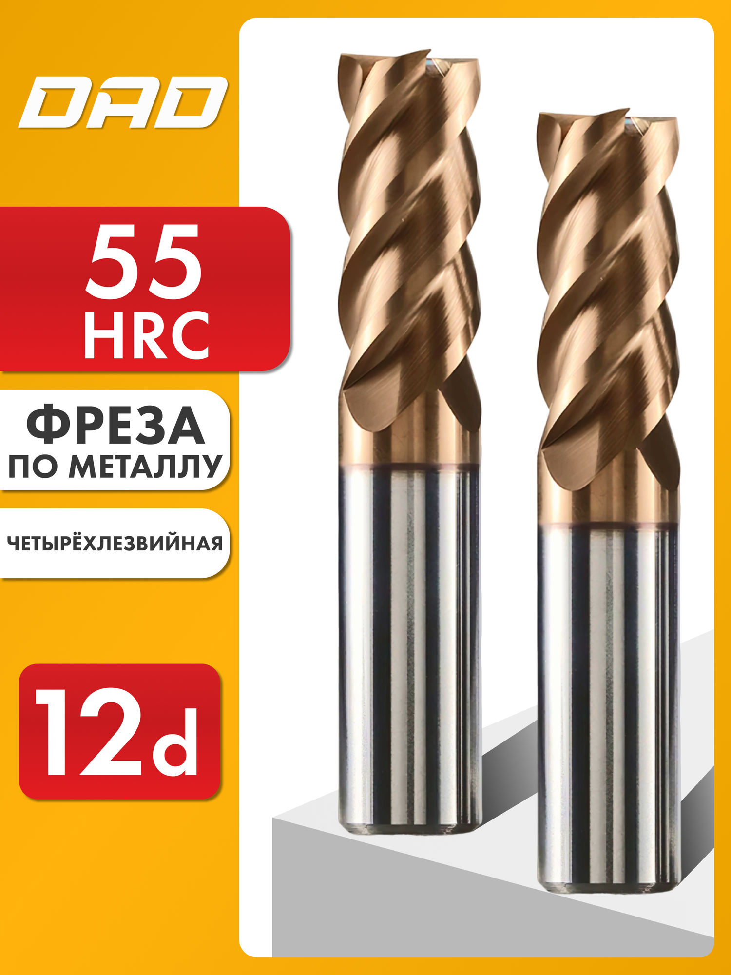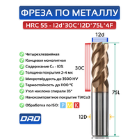 Фреза концевая монолитная твердосплавная 4-х лезвийная для станка ЧПУ. Изготовлена из порошкового твердого сплава с содержанием Co — 10%.