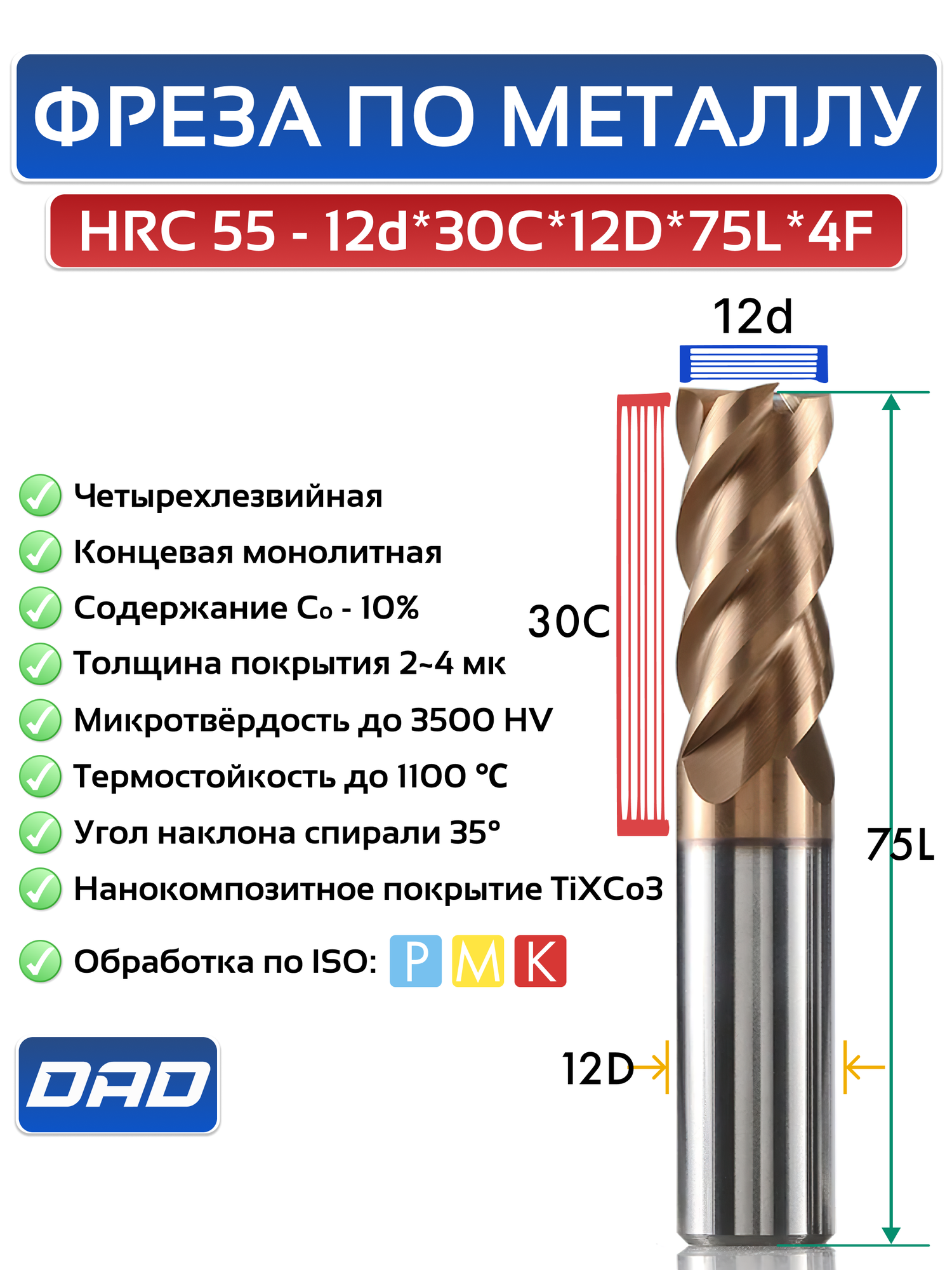 Покрыта нанокомпозитным материалом TiXCo3 — чрезвычайно точный контроль текстуры кристаллов, хороший баланс микротвердости и ударной вязкости, универсальные фрезерные и сверлильные покрытия, подходящие для нержавеющей стали, высокопрочной стали с умеренно высокой скоростью обработки и высокой подачей. Высокое содержание алюминия обеспечивает превосходную термостойкость инструмента и стойкость к окислению. Специальный метод нанесения напыления оптимизирует его структуру и значительно улучшает стабильность.