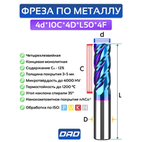 Купить Фреза по металлу концевая 4d*10C*4D*L50*4F HRC65 монолитная сверхтвёрдая с нанокомпозитным напылением nACo с доставкой по всей России.