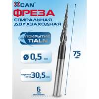 Фреза спиральная двухзаходная конусная сферическая XCAN R0,25х30,5хD6х75 мм, Фреза конусная сферическая по дереву: сравнение цен, характеристики, фото, актуальное наличие и цены.