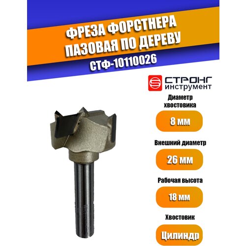 Купить Фреза сверло Форстнера пазовая по дереву, 8/26D/18H мм, Strong СТФ-10110026 с доставкой по всей России. Фреза сверло Форстнера пазовая по дереву, 8/26D/18H мм, Strong СТФ-10110026: сравнение цен, характеристики, фото, актуальное наличие и цены.