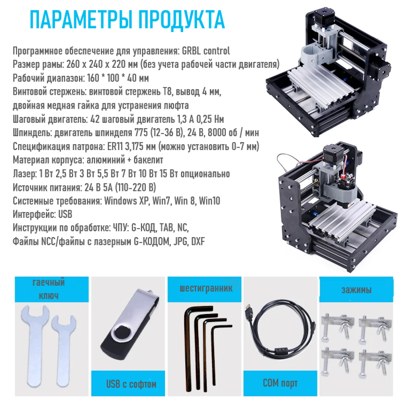 | Дополнительная информация | Шпиндель ER11, 48 В/11000 об/мин |