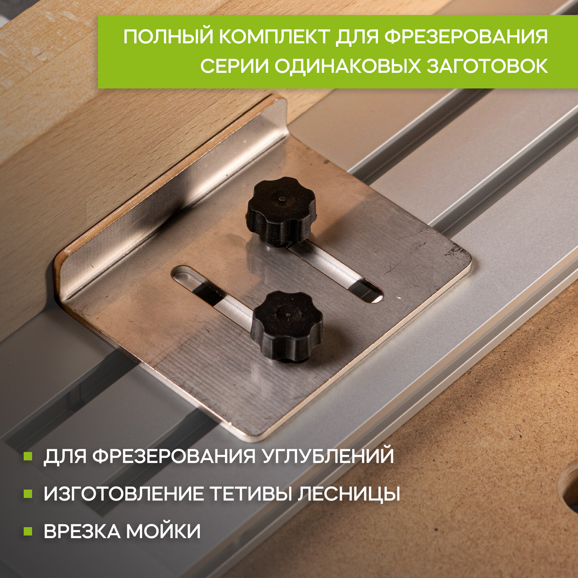 Фрезерный шаблон KT RJ7001000 plus 700x1000 мм - универсальное приспособление для фрезерования одинаковых или узких заготовок, углублений, сквозных проёмов, изготовлении тетивы лестницы и иных подобных задач.
