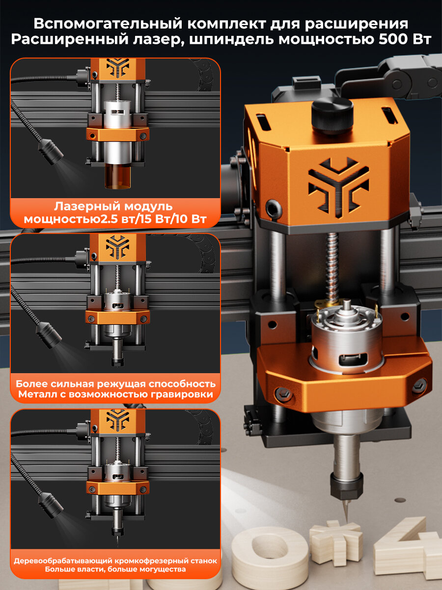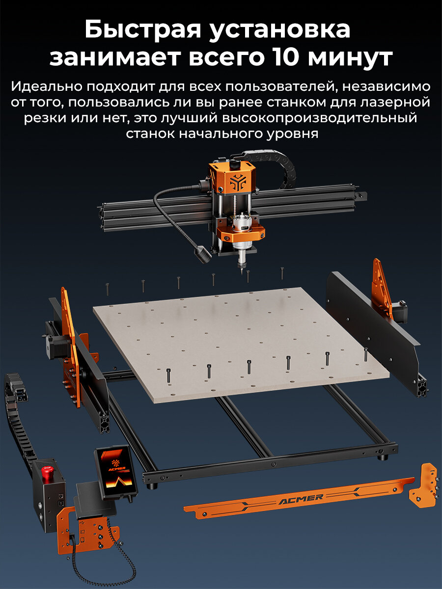 | Комплектация | Передний профиль x 1; Задний профиль x 1; Модуль оси X x 1; Модуль оптической оси x 1; Левый профиль x 1; Правый профиль x 1 Правый профиль x 1; Гнездо материнской платы x 1; Двигатель x 1; Слайдер x 1; Угловой кронштейн x 3; Измерительная алюминиевая стойка x 1; Лазерный модуль x 1; Держатель кабеля x 1; Картридер + TF-карта x 1; Набор инструментов x 1; Руководство пользователя на русском языке x1; Деревянная доска x1; USB-кабель x1; Адаптер x1; Защитные очки x1; Набор винтов x1; Компрессор с воздушным насосом x1; |