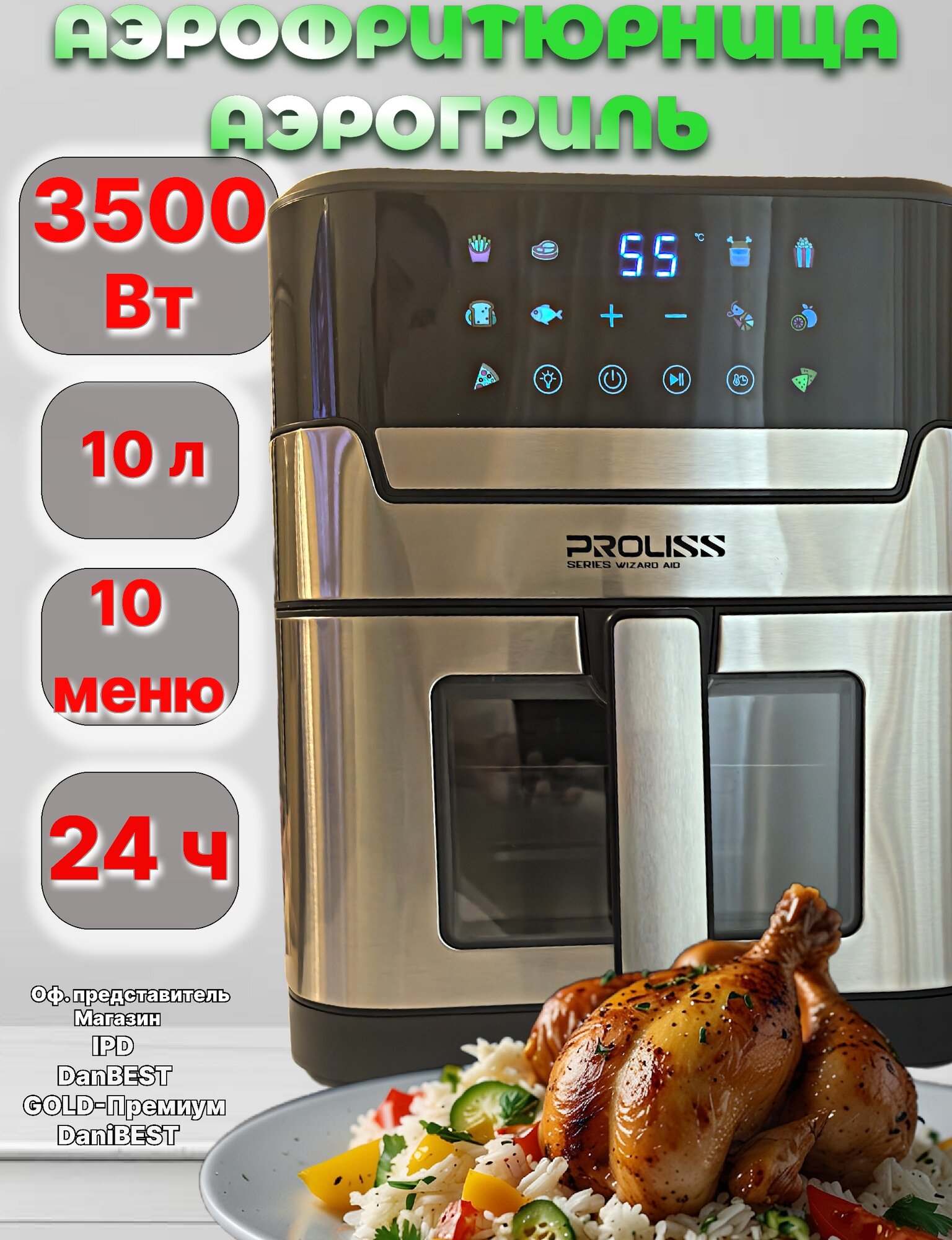 Фритюрница аэрогриль 2400Вт, 10 программ, сенсорное управление, серебристая: сравнение цен, характеристики, фото, актуальное наличие и цены.