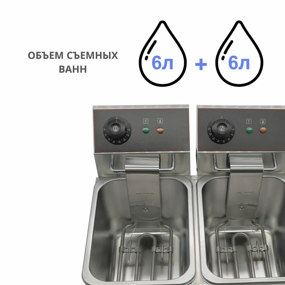 Фритюрница AIRHOT EF6+6 со съемными чашами 6л+6л, профессиональная для кафе, ресторана, электрофритюрница, 4кВт: сравнение цен, характеристики, фото, актуальное наличие и цены.