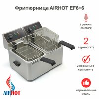 Электрическая фритюрница AIRHOT EF6+6 общей мощностью 4кВт предназначена для приготовления разнообразных кулинарных изделий во фритюре. Обеспечивает получение золотистой корочки у чебуреков, пирожков, картофеля фри, сыра, рыбных палочек, роллов и т.д. Отлично подойдет для любого формата предприятия общественного питания и домашнего использования.