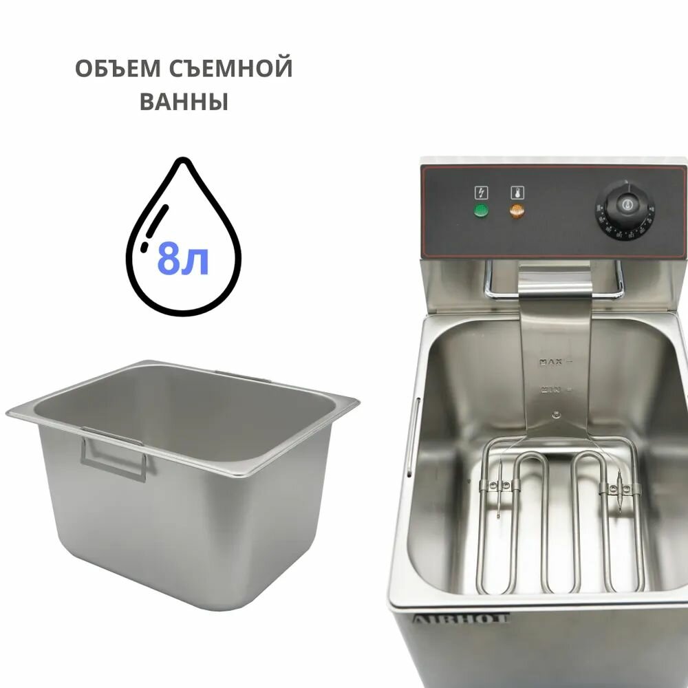 Фритюрница AIRHOT EF8 со съемной чашей 8л, фритюрница профессиональная для кафе, ресторана, электрофритюрница, 3.25кВт: сравнение цен, характеристики, фото, актуальное наличие и цены.