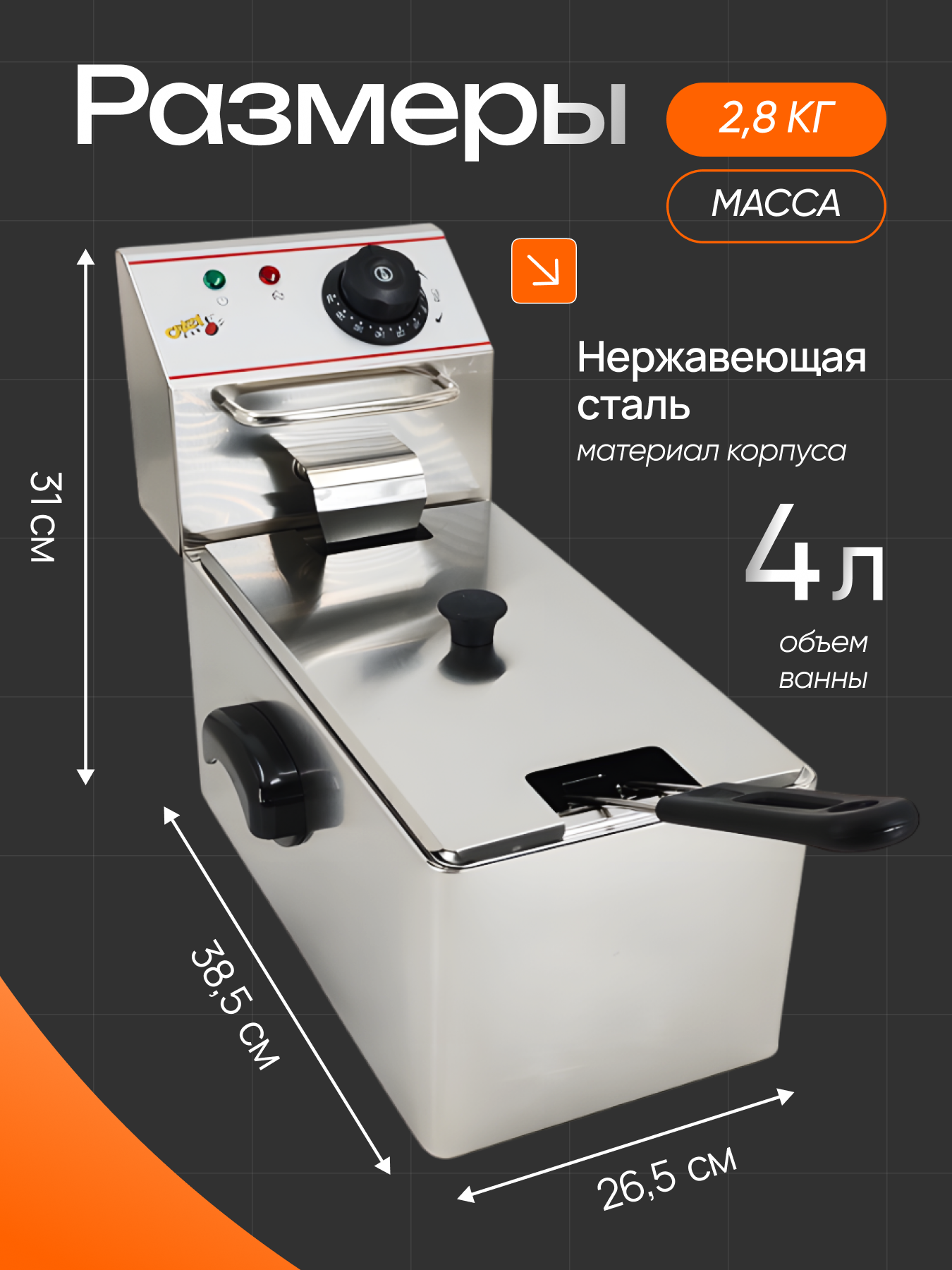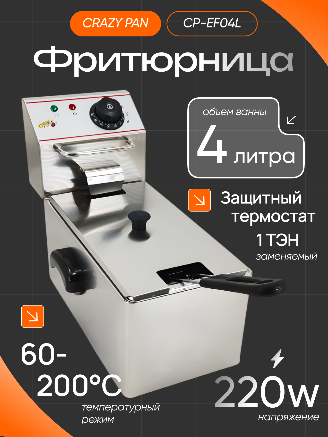 Фритюрница Crazy Pan CP-EF04L, 2000 Вт, 4 литра, нержавеющая сталь, вилка в комплекте: сравнение цен, характеристики, фото, актуальное наличие и цены.