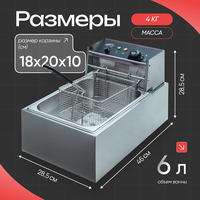Фритюрница Crazy Pan CP-EF06L, 2500 Вт, 6 литров, нержавеющая сталь, защита от перегрева