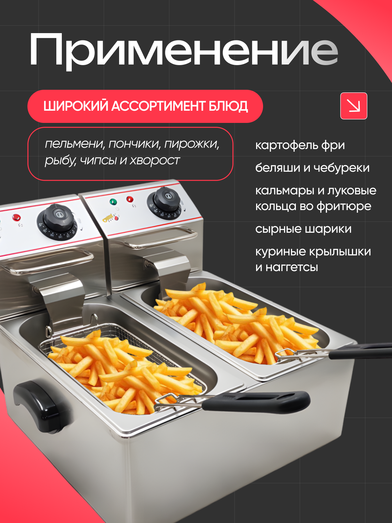 Купить Фритюрница Crazy Pan CP-EF44L двойная, 2×2000 Вт, 4+4 литра, нержавеющая сталь, две корзины, два блока нагрева с доставкой по всей России.