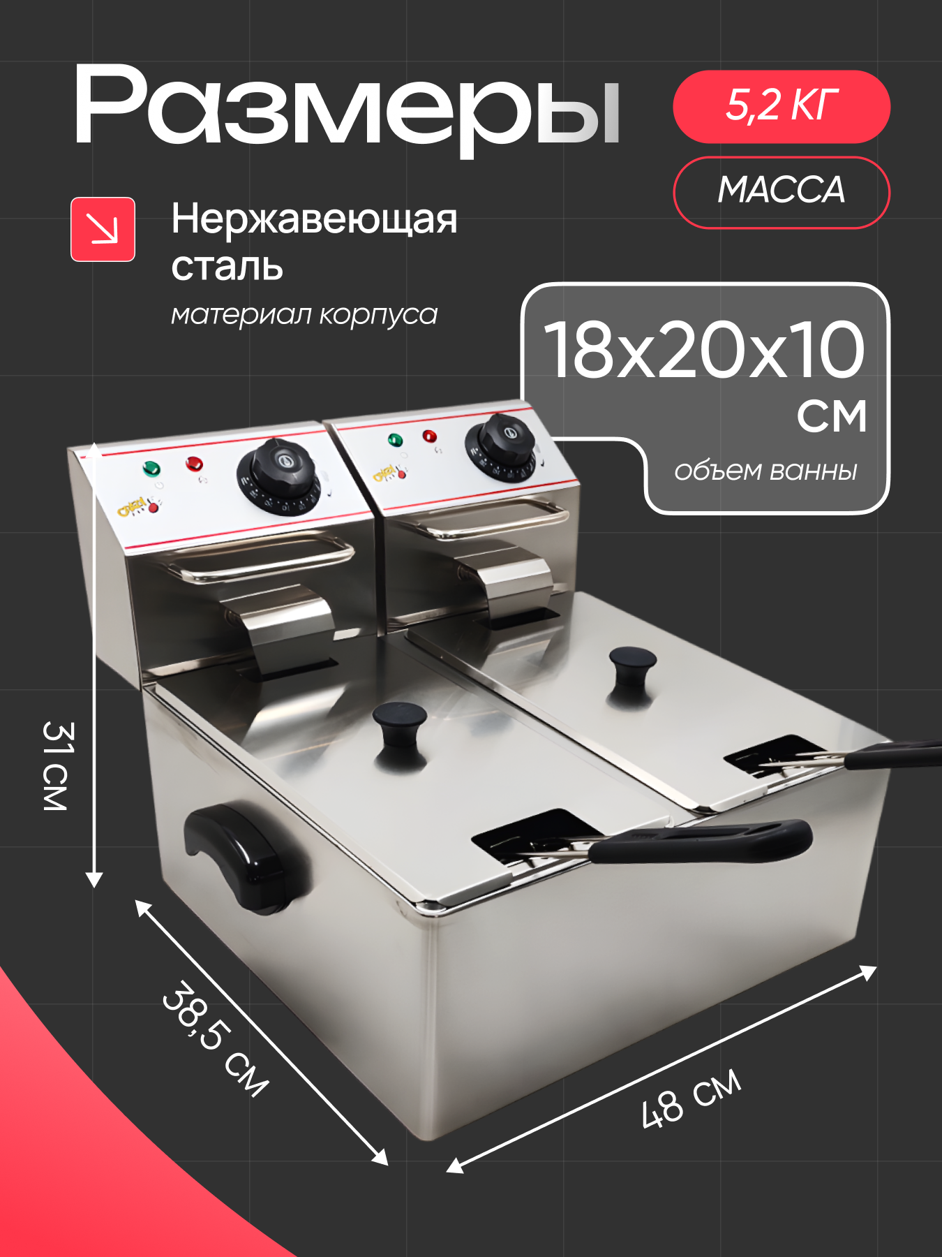 Фритюрница Crazy Pan CP-EF44L двойная, 2×2000 Вт, 4+4 литра, нержавеющая сталь, две корзины, два блока нагрева: сравнение цен, характеристики, фото, актуальное наличие и цены.