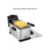 Фритюрница Kitfort КТ-4051 2000Вт серебристый/черный. Товар оригинальный и новый. Официальная Гарантия по России. Надежная упаковка заказа. Хрустящее снаружи, нежное внутри! Продукты во фритюрнице Kitfort КТ-4051 готовятся быстрее, чем на сковороде из-за короткого воздействия высокой температуры со всех сторон. Хорошо зажаренные во фритюре продукты покрыты хрустящей корочкой, под которой почти нет масла.