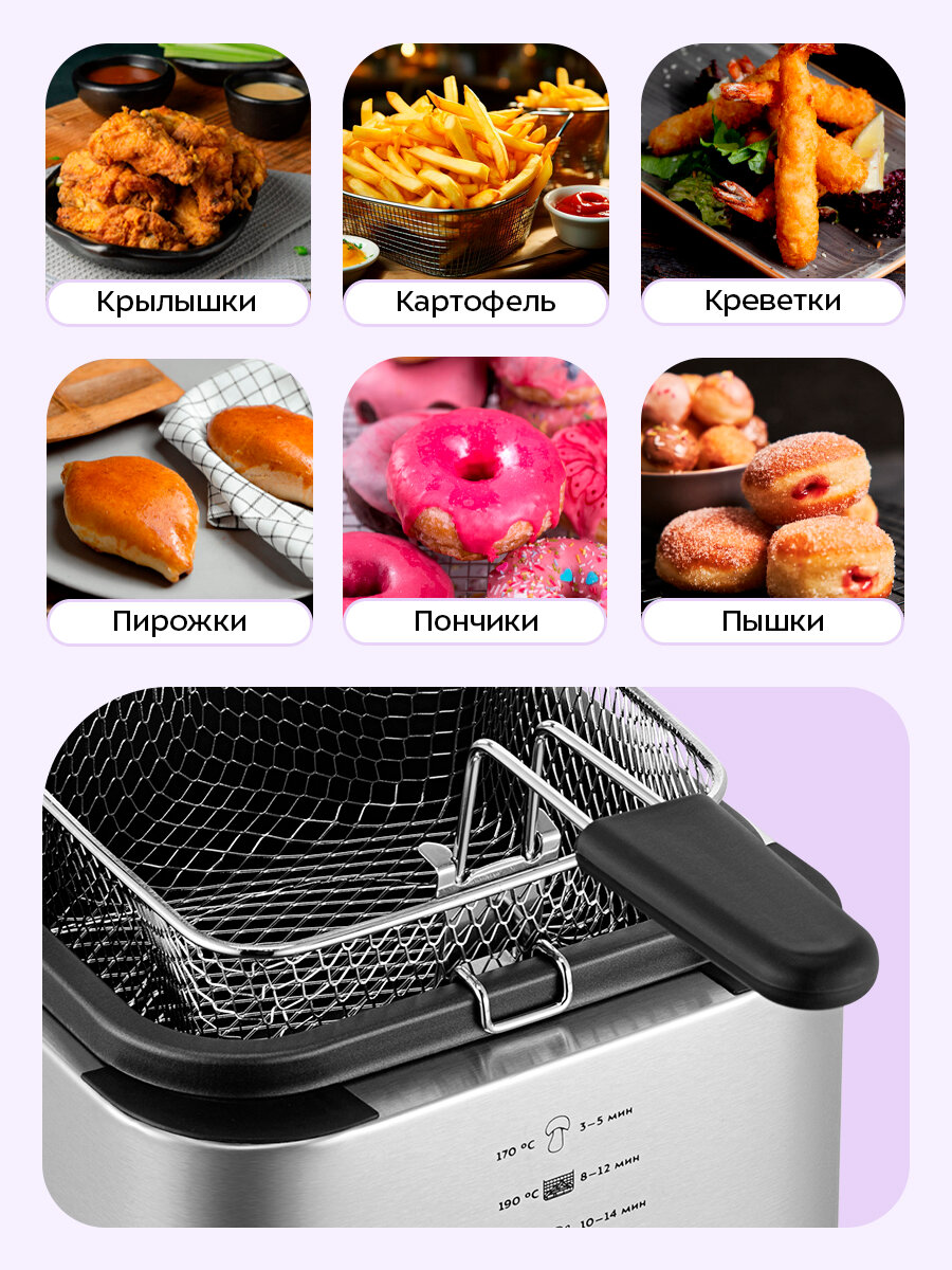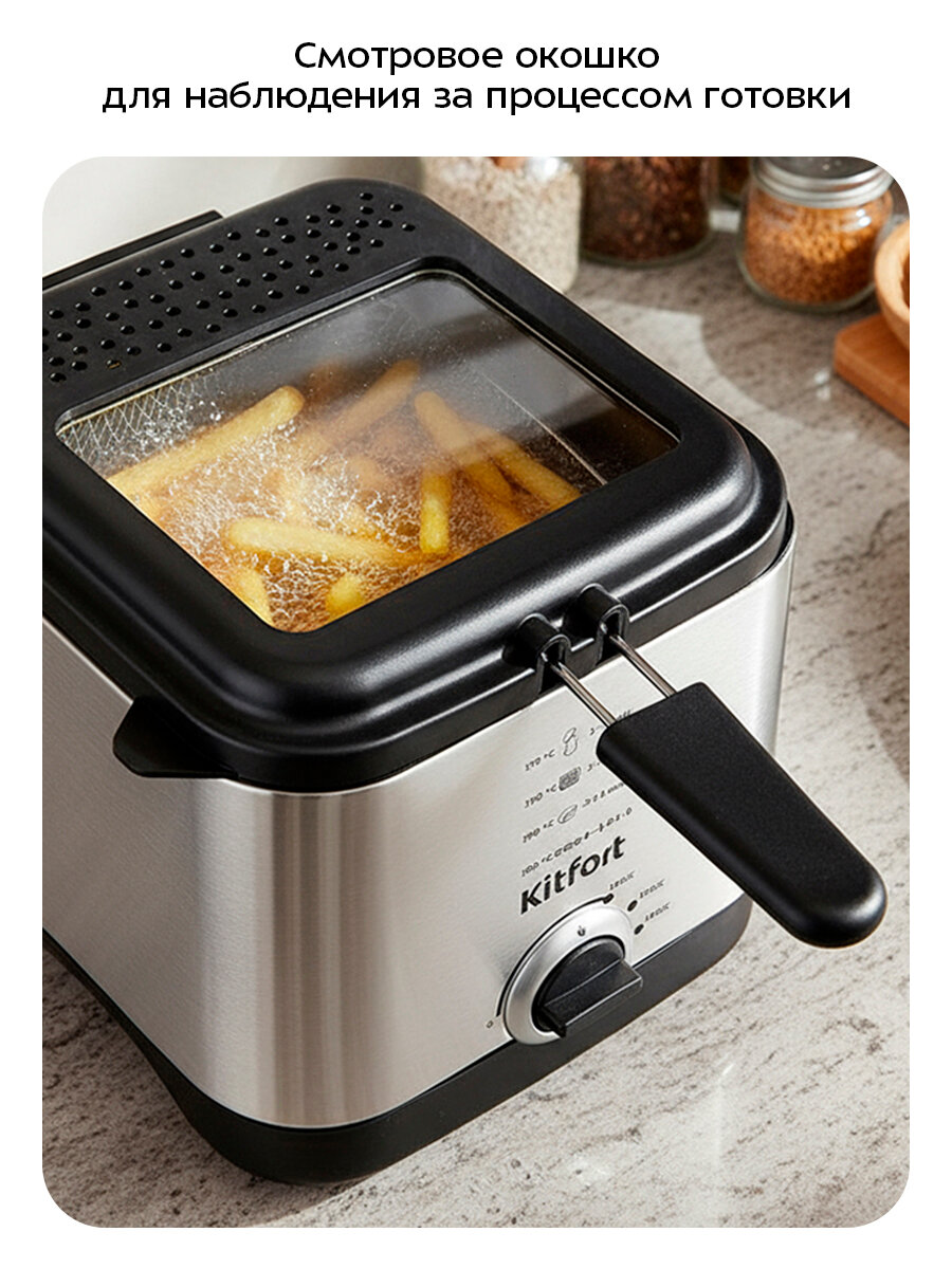 Фритюрница Kitfort КТ-2017 станет незаменимым помощником на вашей кухне, обеспечивая быстрое и качественное приготовление разнообразных блюд во фритюре.