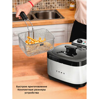 | Особенности | блокировка крышки, индикатор работы/нагрева, ненагревающийся корпус, нескользящие ножки, отсек для шнура, смотровое окно, съемная чаша, таймер, фильтр против запаха |