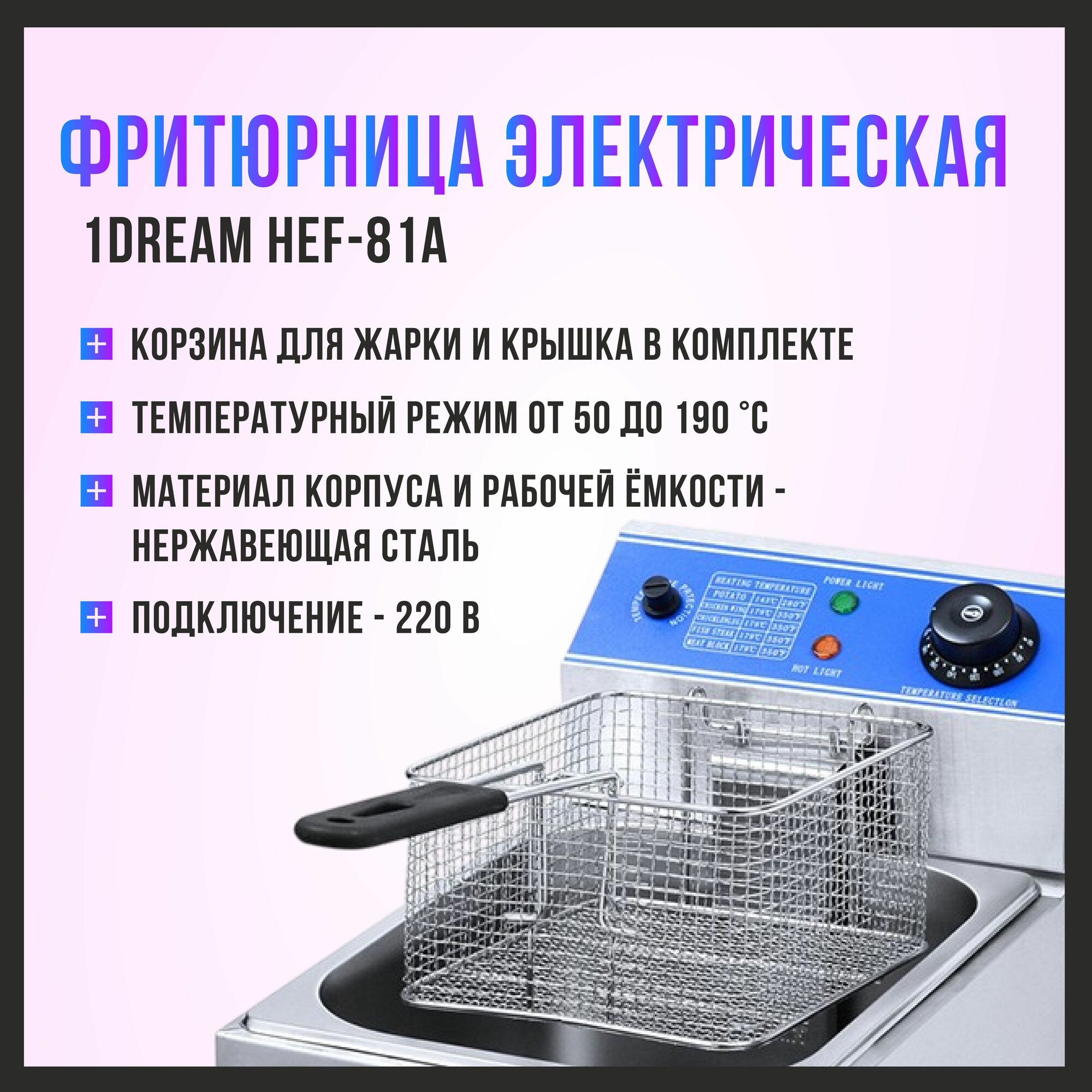 Фритюрница «Красивые продукты» 1Dream HEF-81A, нержавеющая сталь, 6 л