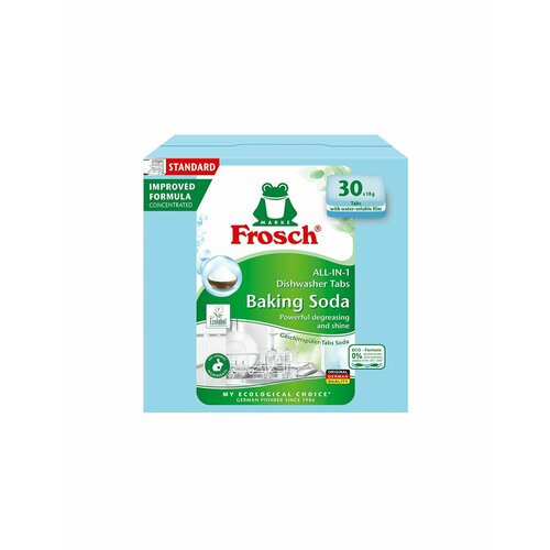 Таблетки "Frosch" предназначены для мытья посуды в посудомоечной машине. Это сильнодействующее и интенсивное средство, обладающее всеми функциями современных таблеток для идеальной чистоты и блеска посуды. Формула с натуральной содой отмывает даже засохшие остатки пищи. Предотвращает помутнение стекла и сохраняет блеск.