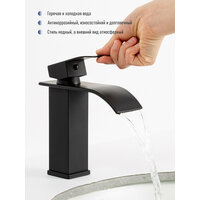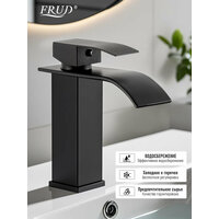 Купить Frud Y10713D-1 Смеситель для раковины, однорычажный, каскадный излив-водопад, черный, матовый с доставкой по всей России.