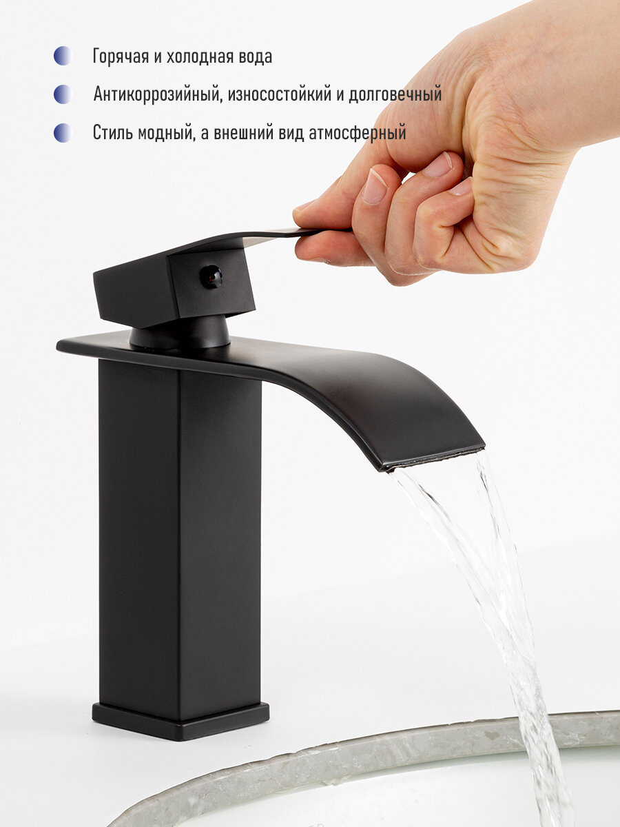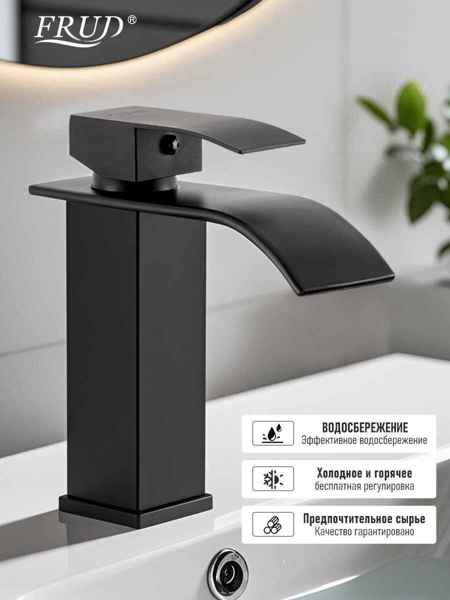 Frud Y10713D-1 Смеситель для раковины, однорычажный, каскадный излив-водопад, черный, матовый: сравнение цен, характеристики, фото, актуальное наличие и цены.