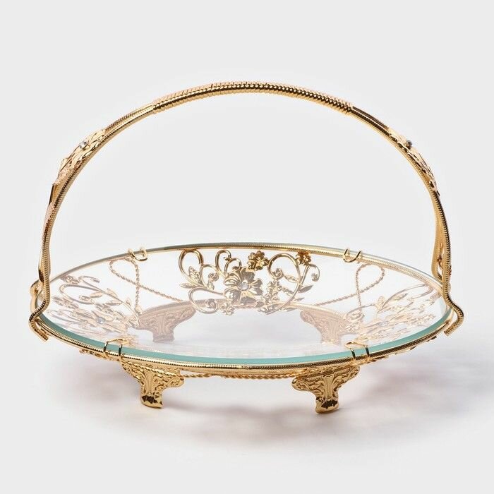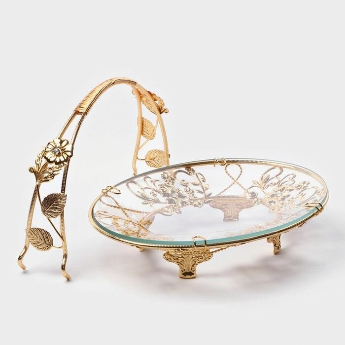 Купить Фруктовница КНР металлическая «Хайгарден» 26х18х19 см, съёмная ручка, цвет металла золотой с доставкой по всей России.