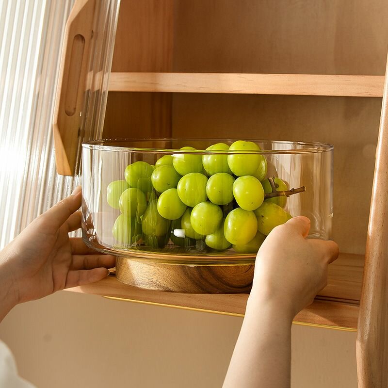 Купить Фруктовница стеклянная глубокая, тарелка для фруктов, деревянная подставка с доставкой по всей России.