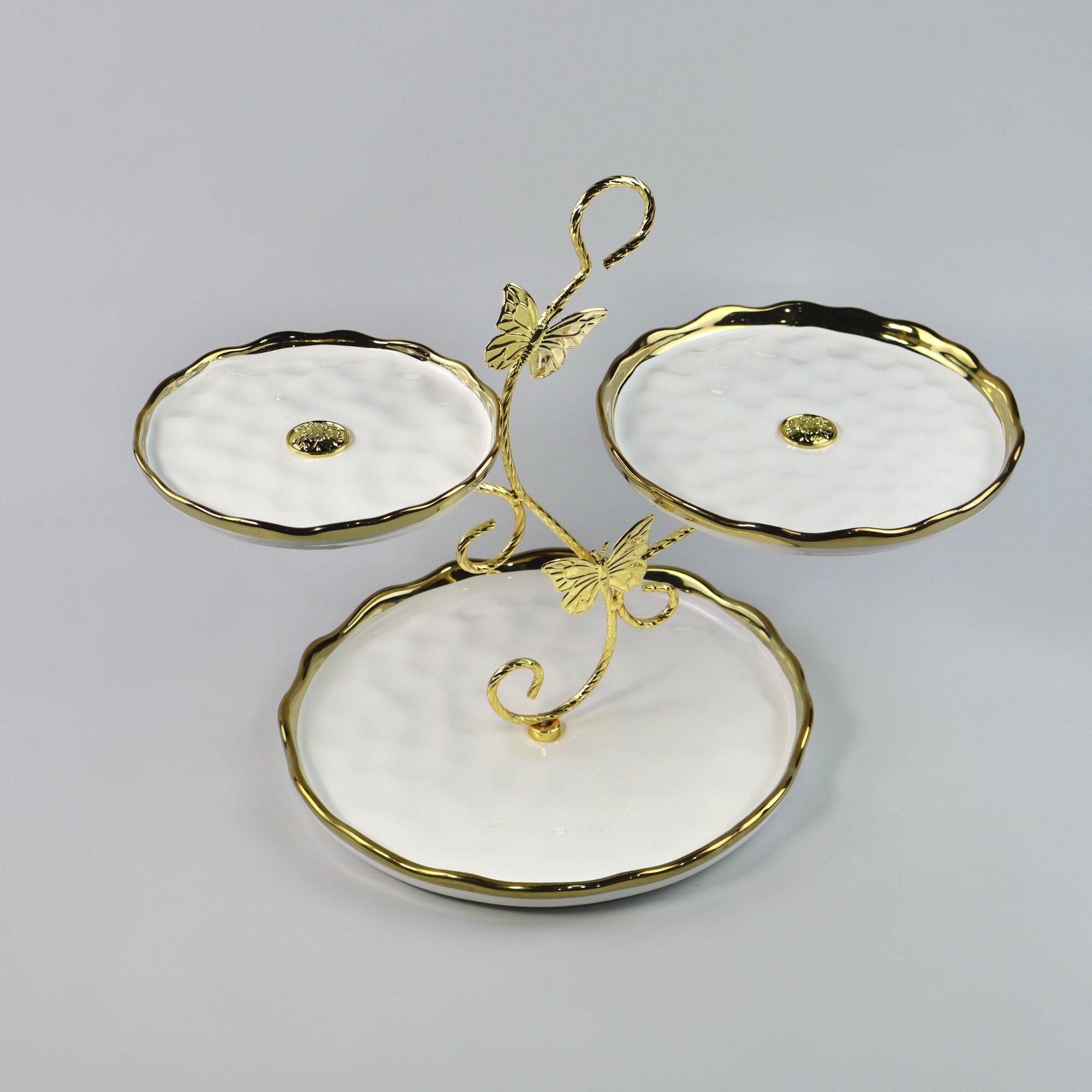 Купить Фруктовница, трехъярусная этажерка, высота 31 см. Lenardi. Коллекция «Полёт бабочки». Цвет «Белый». Фарфор. с доставкой по всей России.