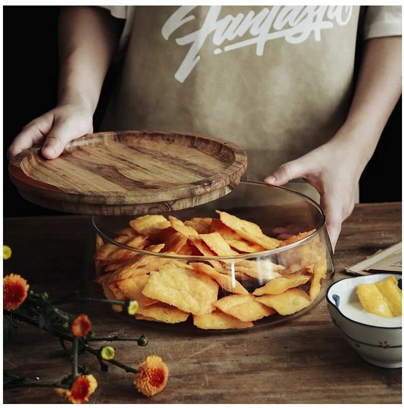 Ваза изготовлена из стекла, что обеспечивает долговечность и надежность. Стеклянная чаша и крышка в комплекте позволяют сохранить свежесть фруктов и защитить их от пыли.