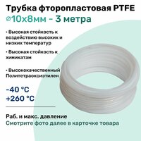 Материал трубки: Политетраоксиэтилен Рабочая среда: Воздух, вода, масло, концетраты кислот и щелочей Температурный режим: -40 °С - +260 °С Рабочее давление зависит от температуры работы, смотрите график на последнем фото в карточке товара.